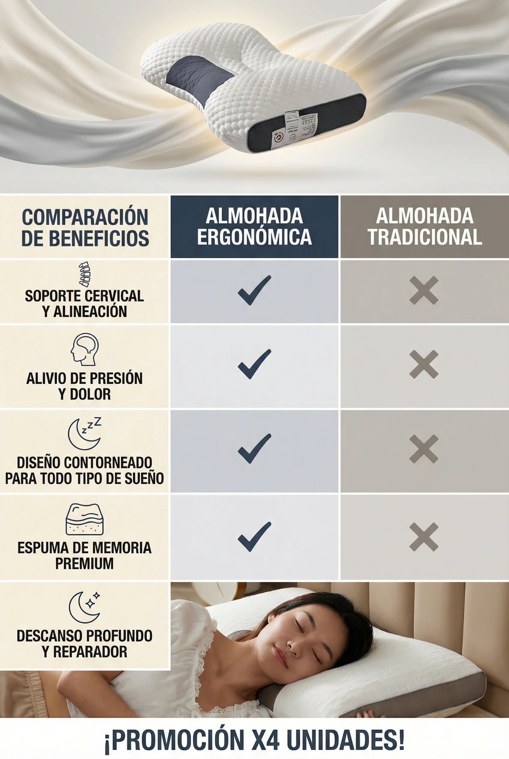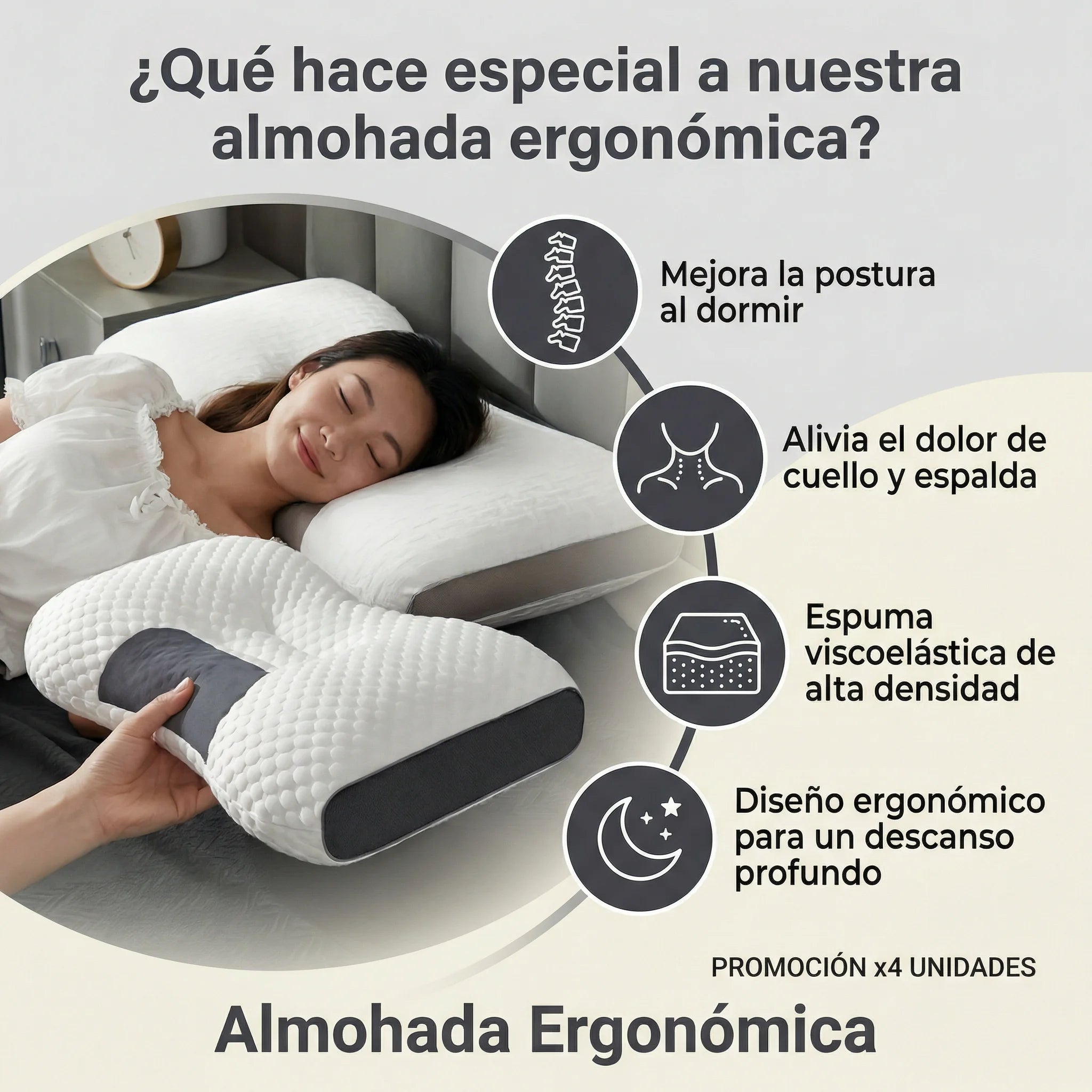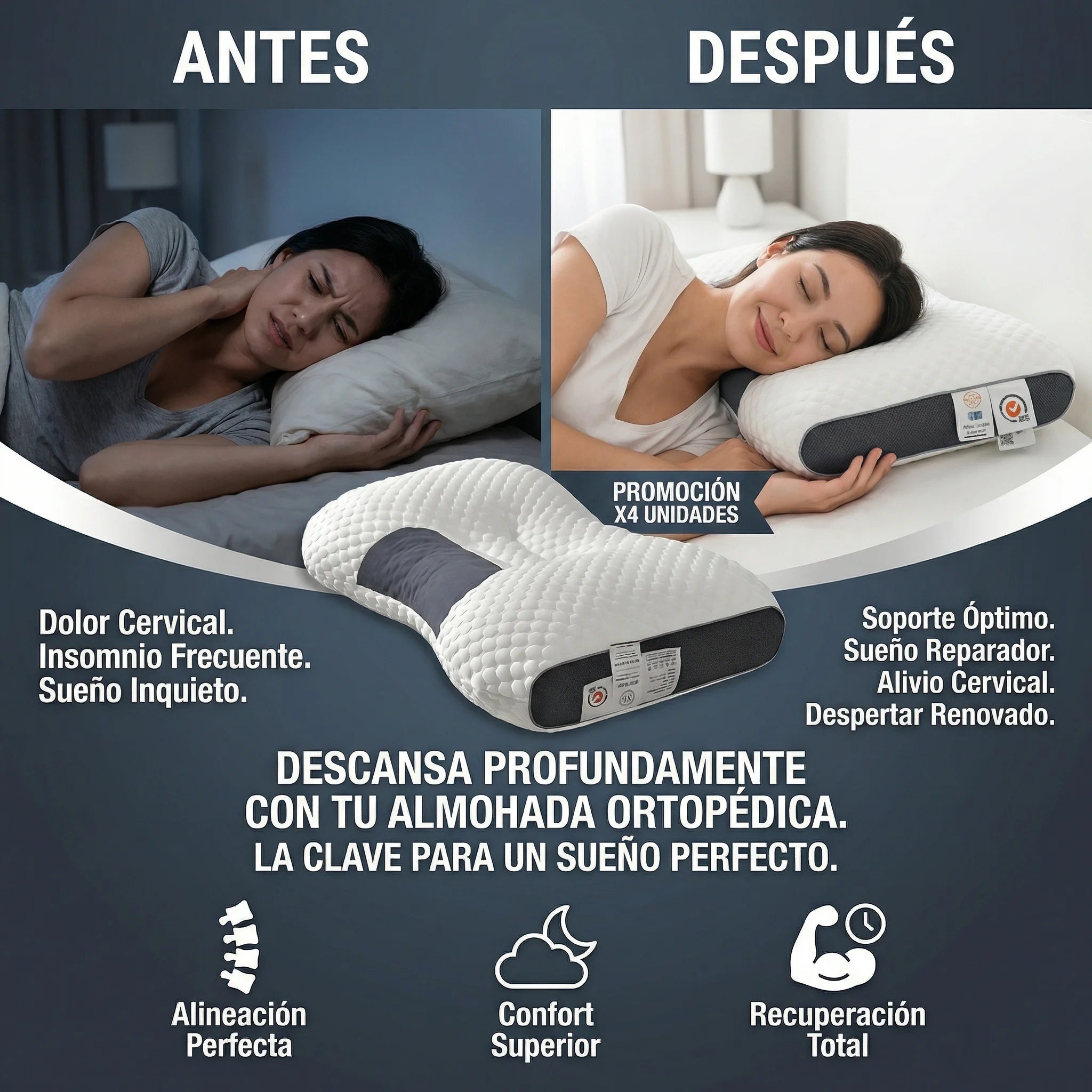 Descansa como tu cuerpo lo necesita y despierta sin rigidez ni molestias cervicales.