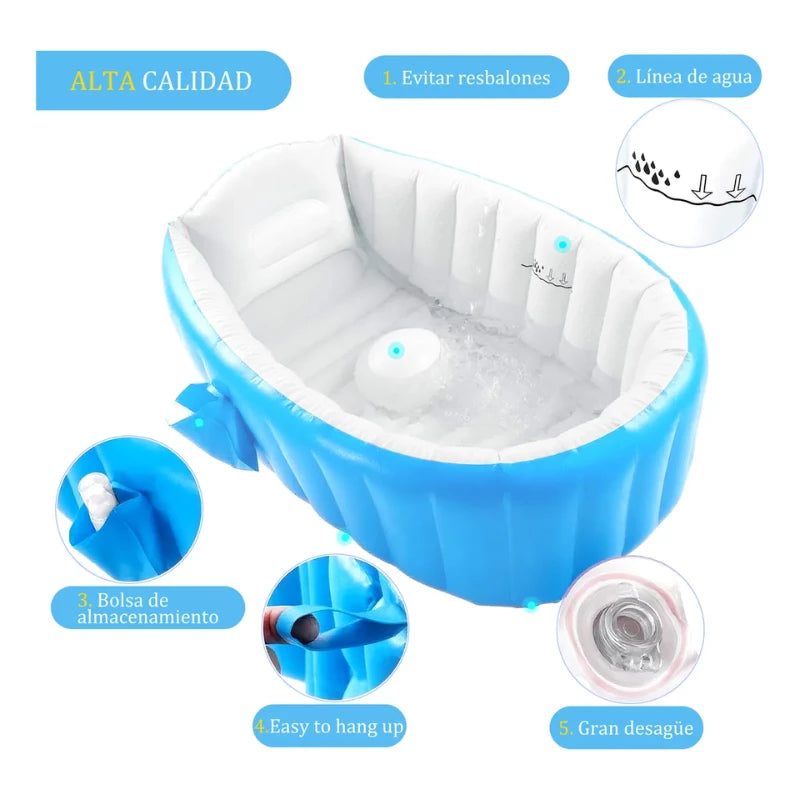 Sí, perfectamente. Su base antideslizante y su diseño estable le permiten anclarse de forma segura dentro de una bañera convencional, haciendo el baño más cómodo para ti y tu bebé.