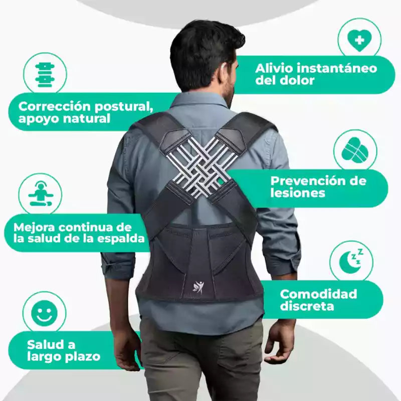 Sí, al corregir la postura y alinear la columna, reduce significativamente la tensión muscular en hombros y espalda alta. Es un apoyo excelente, pero para condiciones crónicas siempre recomendamos consultar con un especialista.