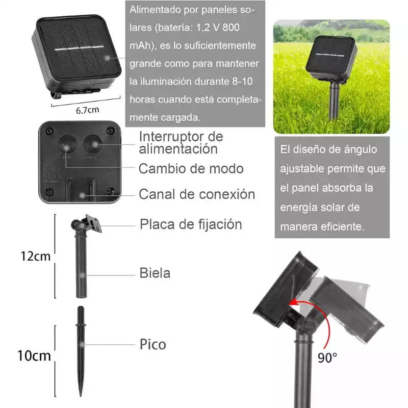 La duración depende de la exposición al sol durante el día. Con una carga completa de sol, puedes disfrutar de entre 6 y 8 horas de iluminación continua durante la noche.