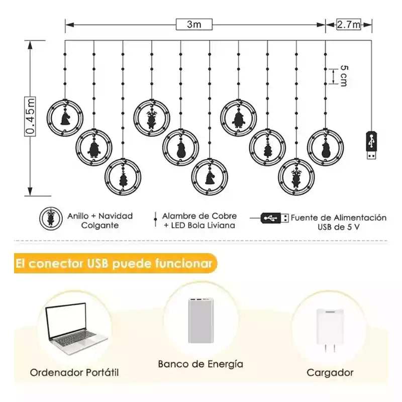 Tiene una longitud total de 3 metros, perfecta para ventanas, paredes o pequeños espacios.