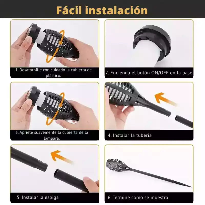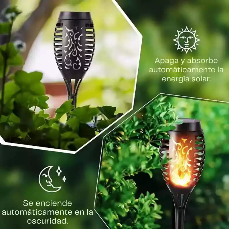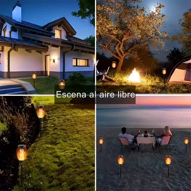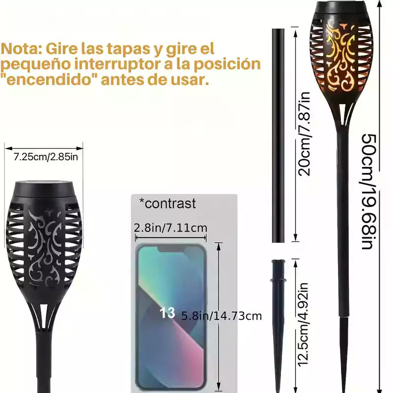 Recibirás un pack completo de 4 linternas solares antorcha, listas para usar inmediatamente.