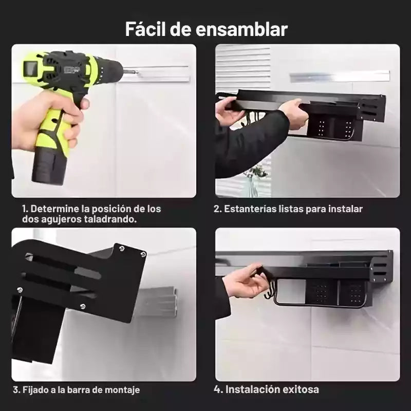 No, para nada. El producto incluye tornillos y tacos. Solo necesitas un taladro para hacer los agujeros en la pared, colocar los tacos y atornillar el organizador. Es un proceso rápido y sencillo.