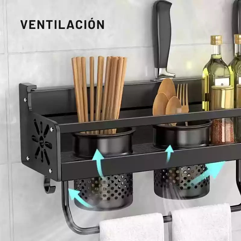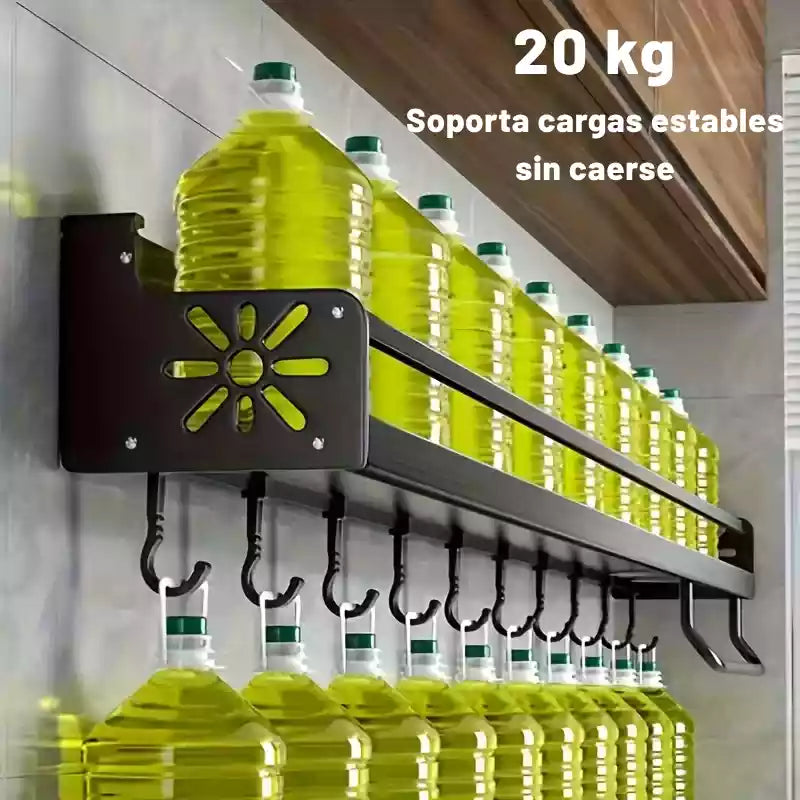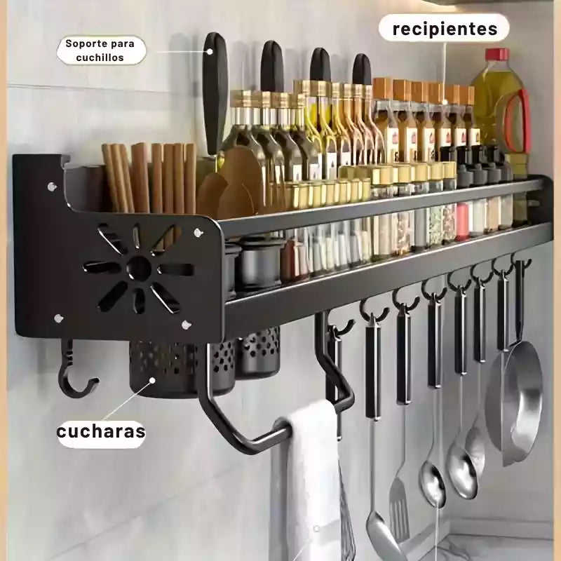 Sí, está diseñado para soportar el peso de especias, utensilios de cocina comunes y cuchillos. Su fijación a la pared es segura. Se recomienda no exceder el peso para el que fue diseñado (como colocar objetos excesivamente pesados).