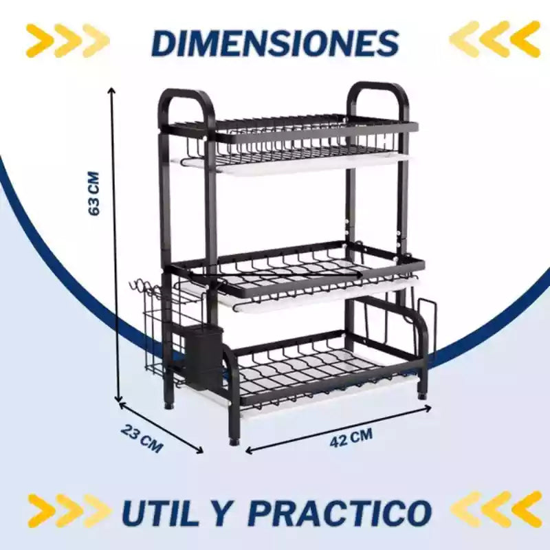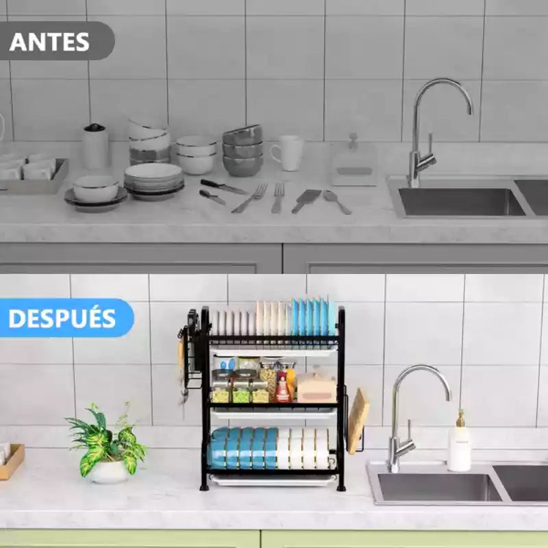 El diseño dirige el agua eficientemente hacia la bandeja inferior y de ahí al fregadero. Mientras lo coloques sobre tu fregadero o dentro de él, no tendrás fugas.