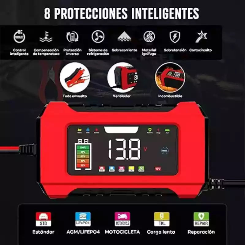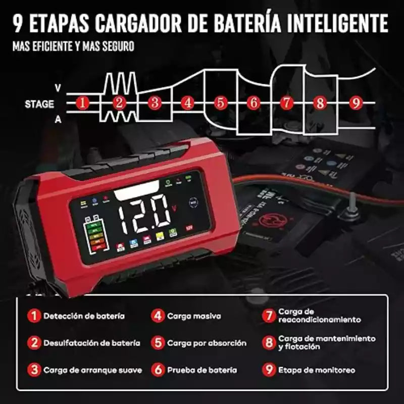 Sí. Este cargador inteligente detecta automáticamente el tipo de batería (estándar, AGM, gel) y aplica el algoritmo de carga óptimo para cada una, gracias a su tecnología de 9 etapas.