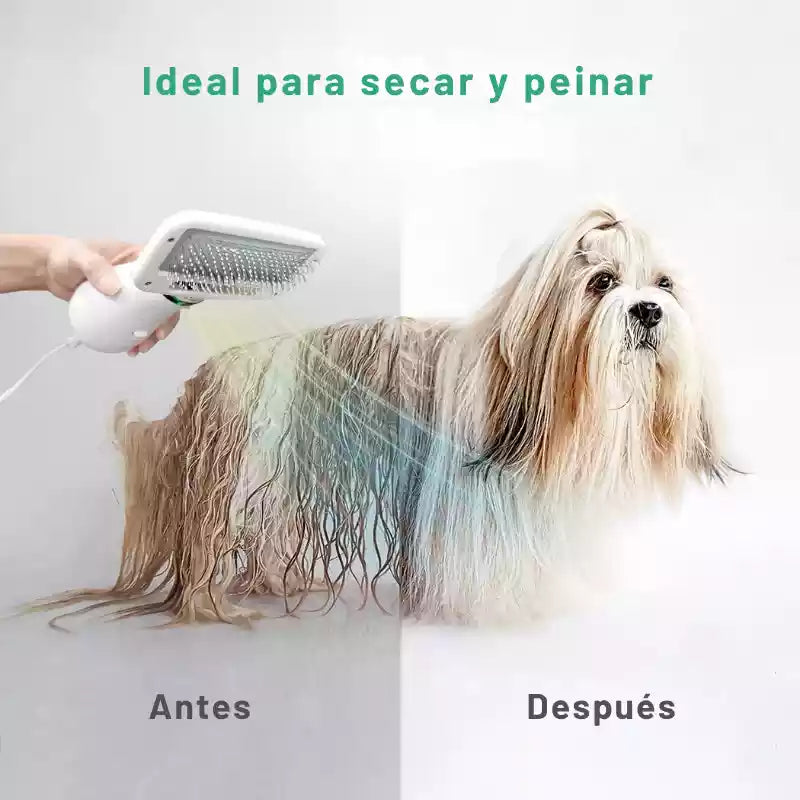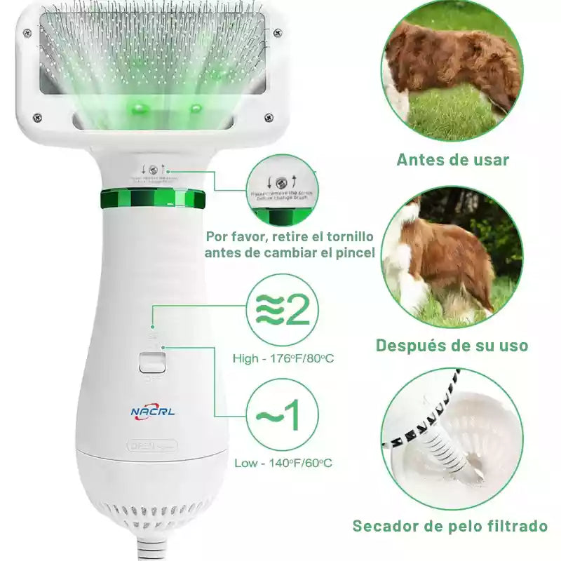 Sí, es excelente para razas de pelo largo. El cepillo integrado ayuda a desenredar durante el secado, facilitando el proceso. Para nudos muy graves, se recomienda un desenredante previo.